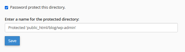 Once you’ve selected the wp-admin directory, you should see an option to “Password Protect this Directory” or something similar. Check this option.